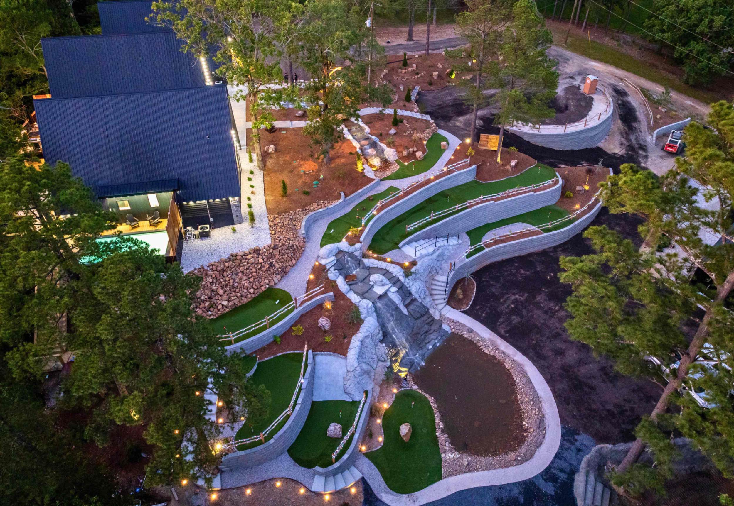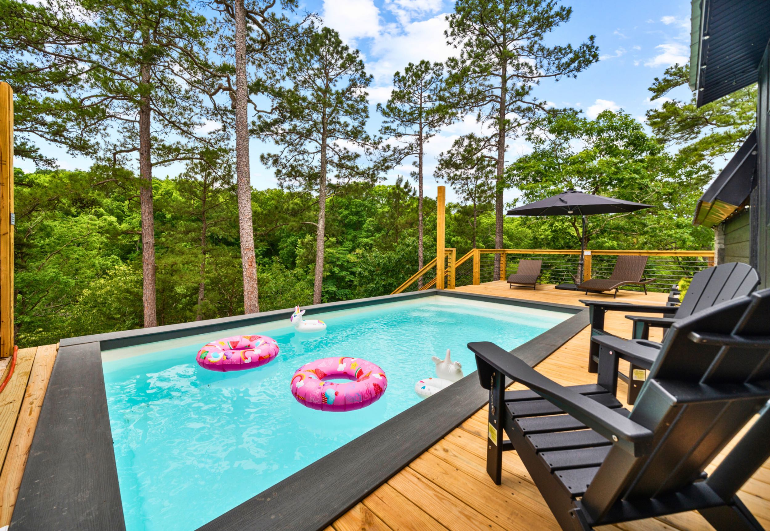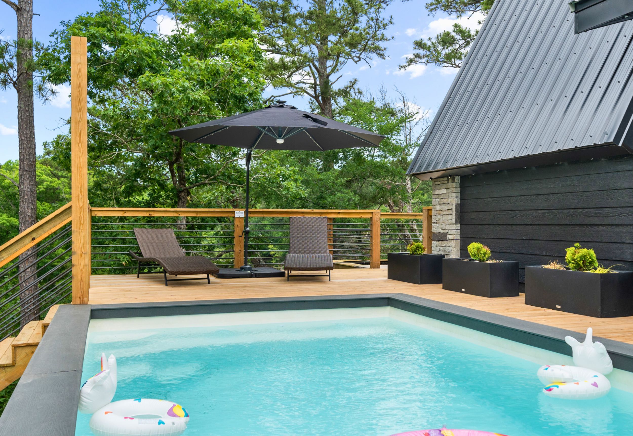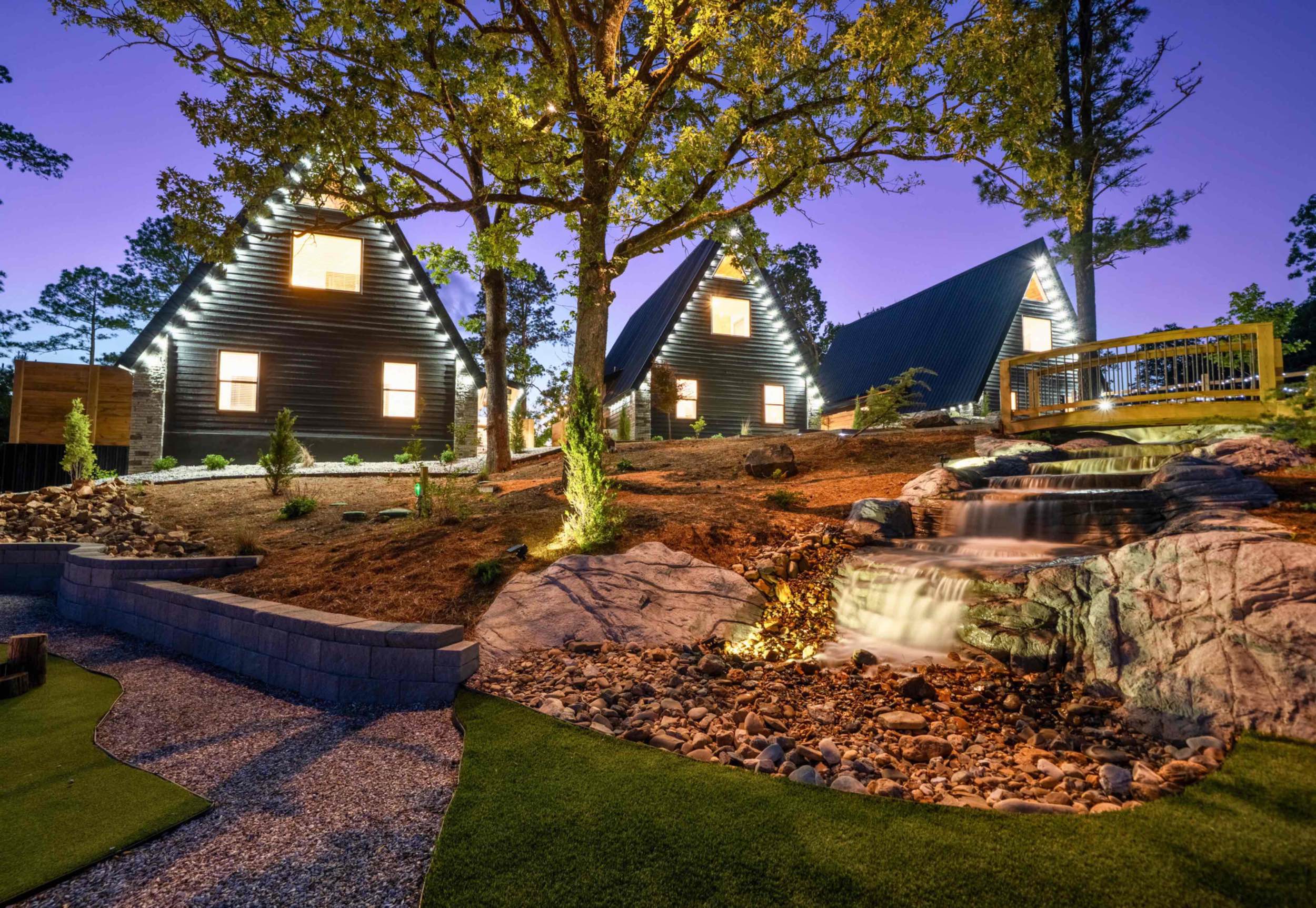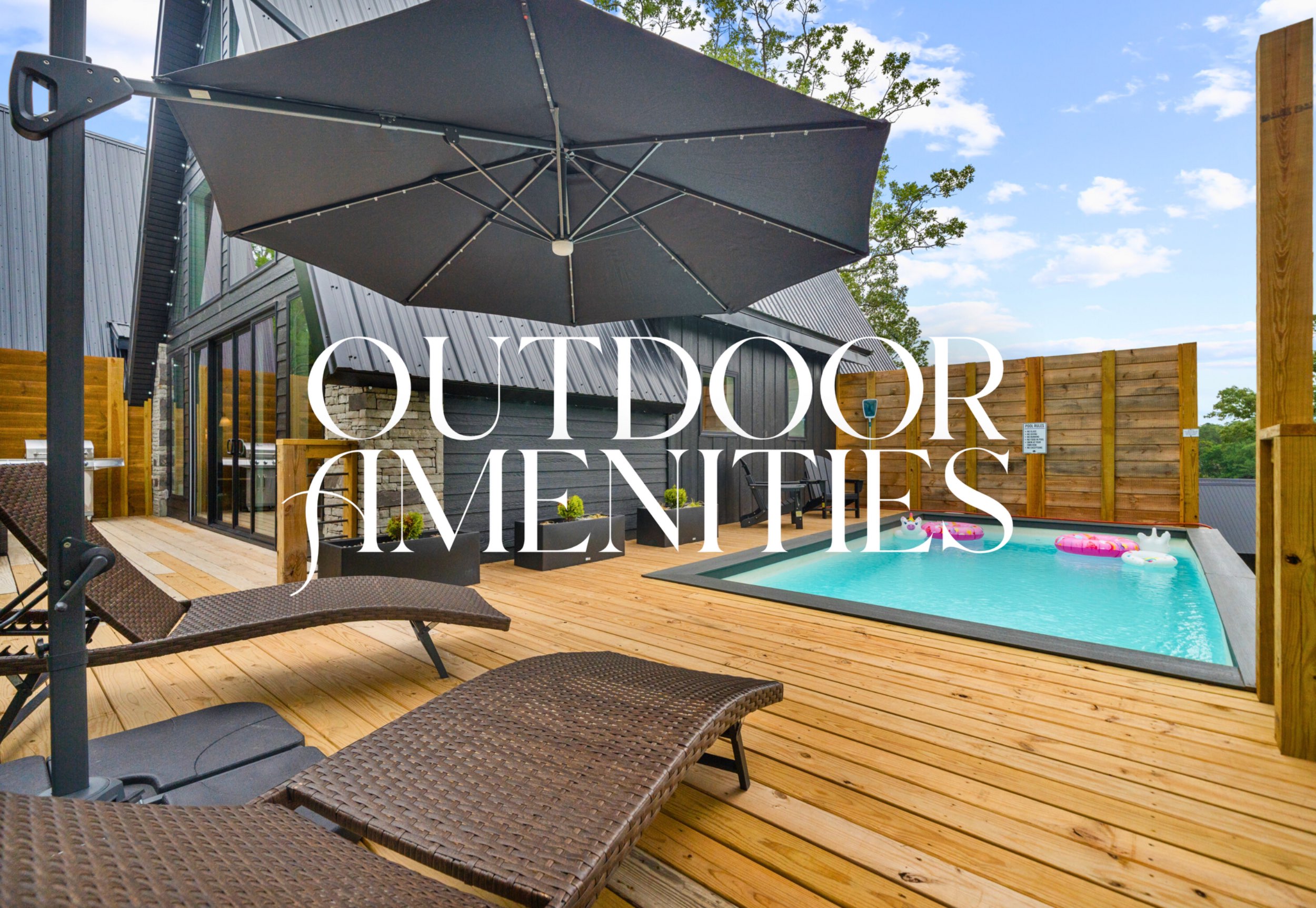 Step outside to find your own private heated pool, a spacious deck with lounge seating, and a cozy fire pit where evenings are best spent under the stars. Just a short stroll away, challenge your crew to a friendly game on the shared 9-hole mini golf course, complete with a custom waterfall feature that adds a little extra charm to the fun. Whether you’re sipping coffee in a hammock or swapping stories by the fire, the outdoor setup is designed for relaxation and reconnection. The peaceful setting offers a welcome retreat after a day exploring, with every corner made for unwinding at your own pace.
