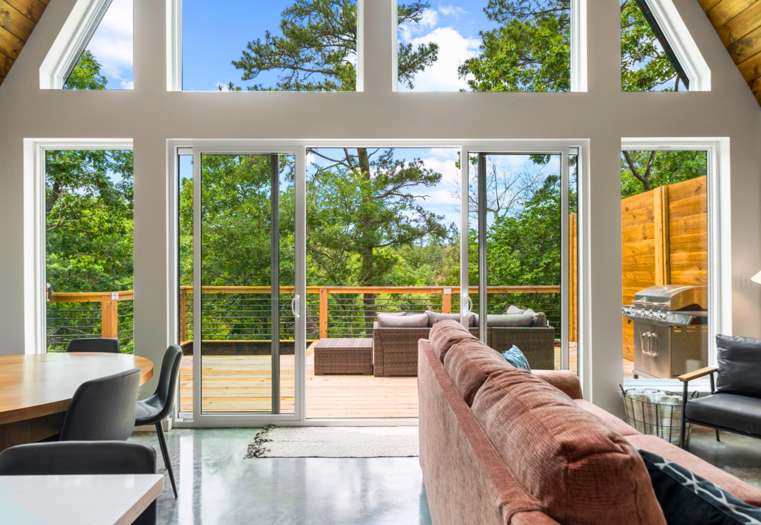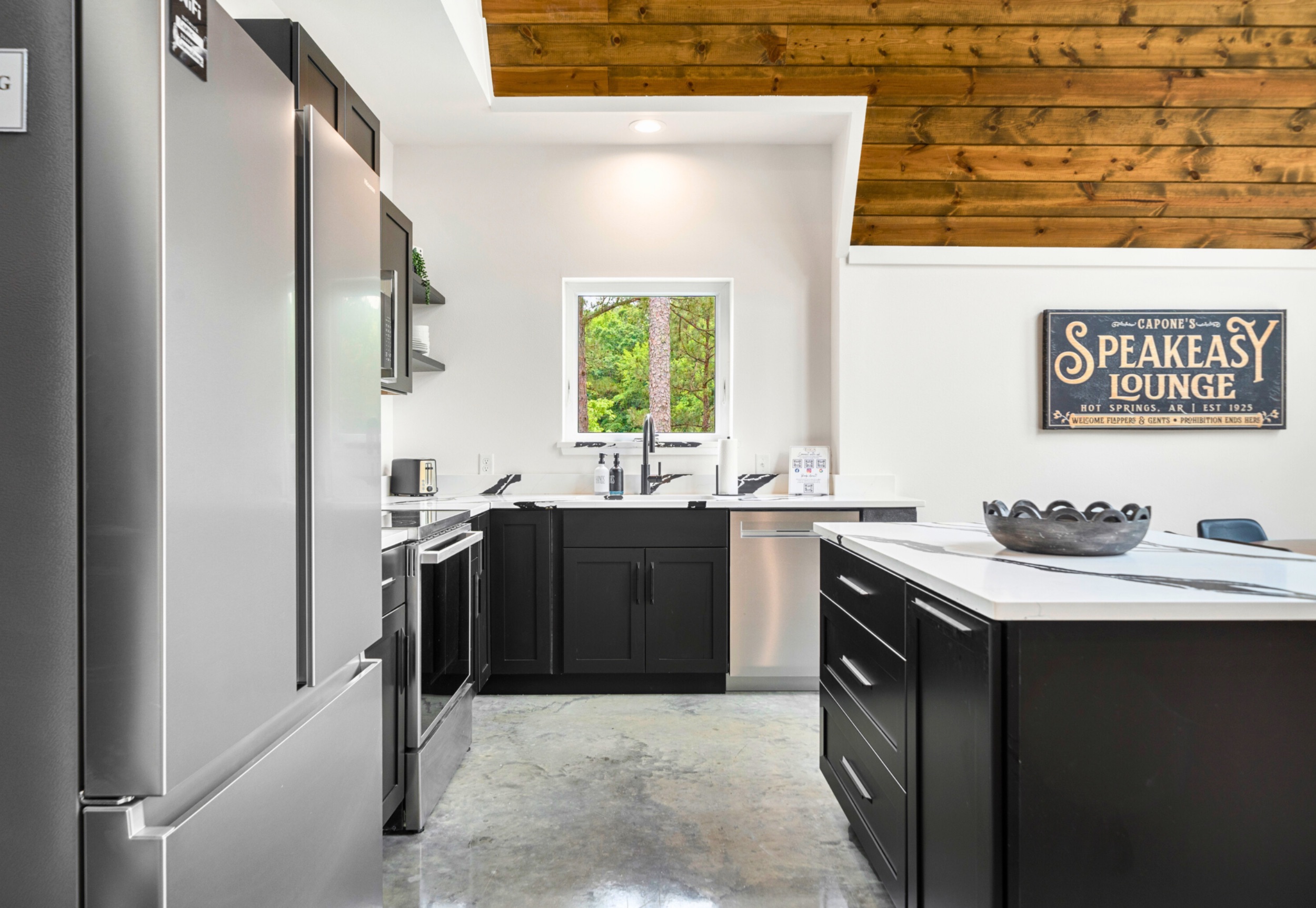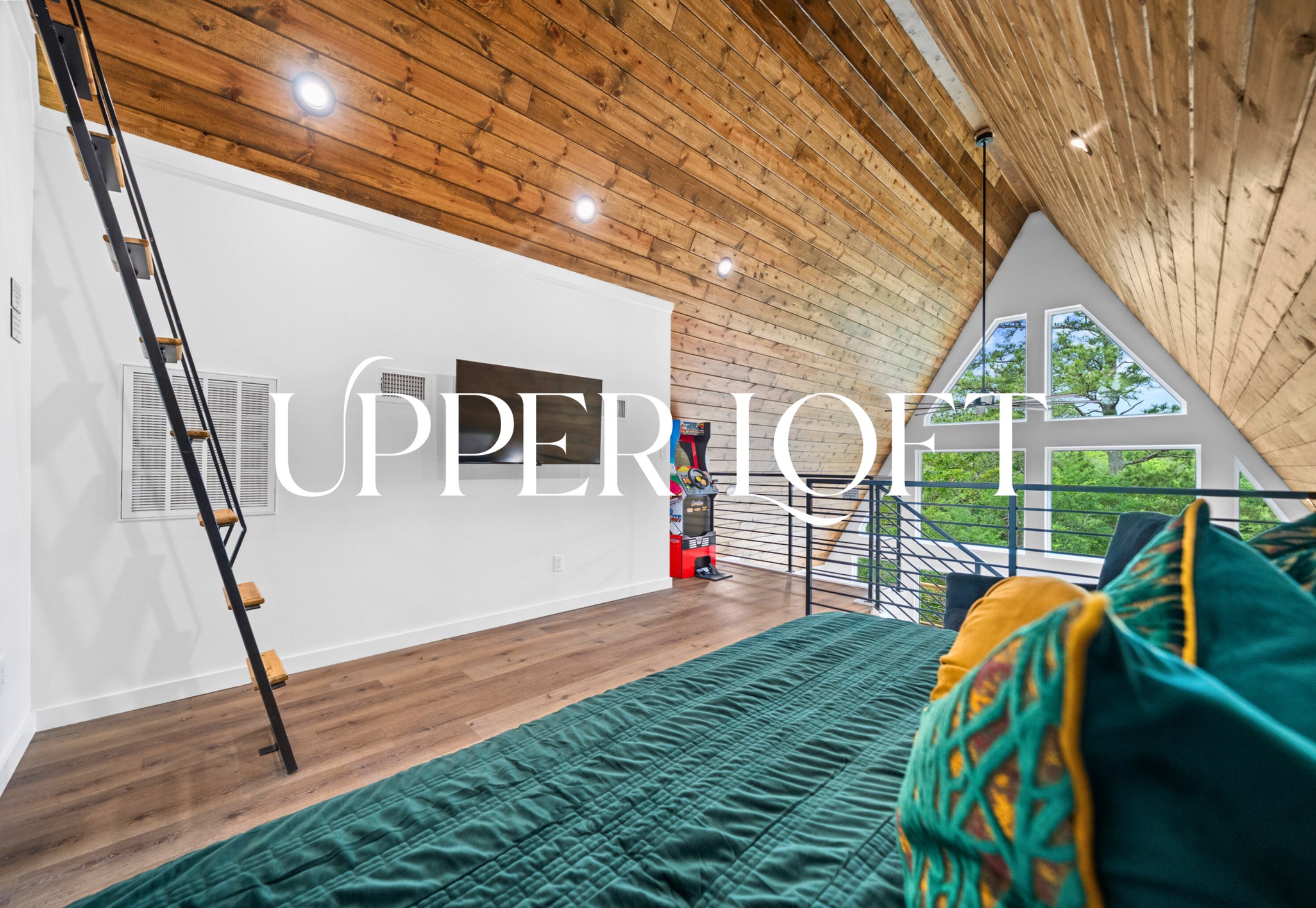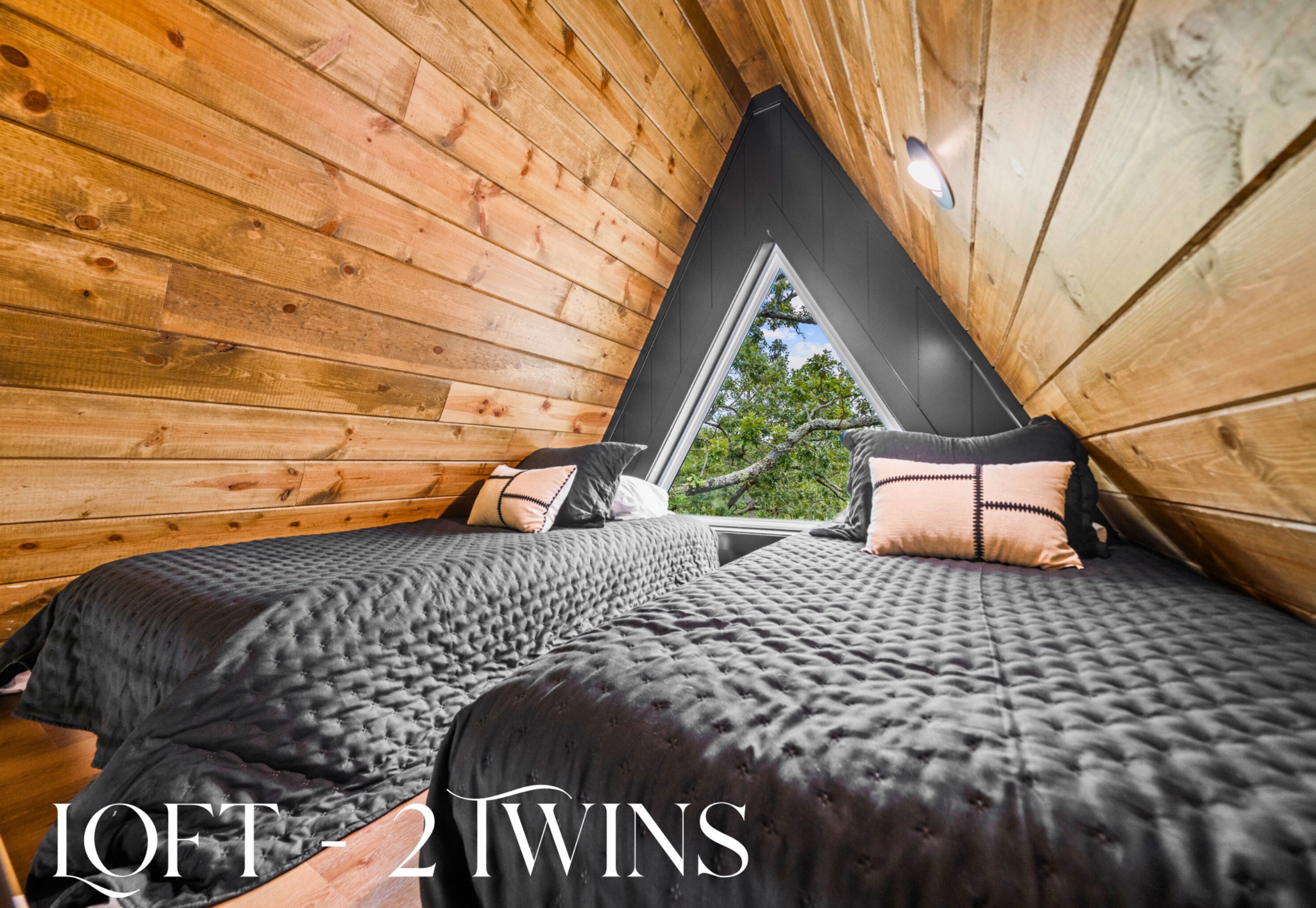 Capone is a stylish A-frame tucked into the trees of Hot Springs, Arkansas, offering the perfect balance of comfort, charm, and history-infused adventure. With two king bedrooms on the main level sharing a full bathroom, plus a loft that features a double bed and two twin beds in the upper nook with its own private bath, the layout is great for families or small groups. The open living area is warm and inviting, with vaulted ceilings, a fireplace, and plenty of natural light, while the fully equipped kitchen makes it easy to gather for meals at home.