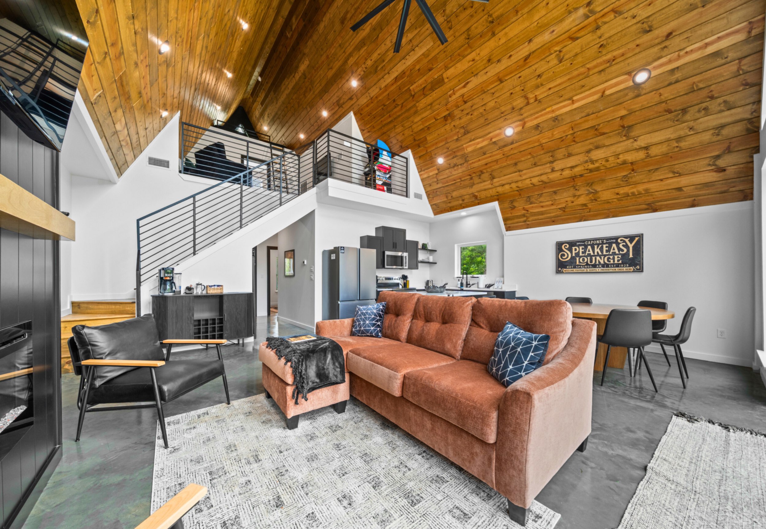 Designed with both comfort and functionality in mind, the layout features two king bedrooms on the main level, each offering a calm and inviting place to unwind. These rooms share a full bathroom just steps away. Upstairs, the loft provides a fun and flexible sleeping space with a double bed and two twin beds nestled into the upper nook. A second full bathroom in the loft ensures everyone has the space and privacy they need throughout their stay.