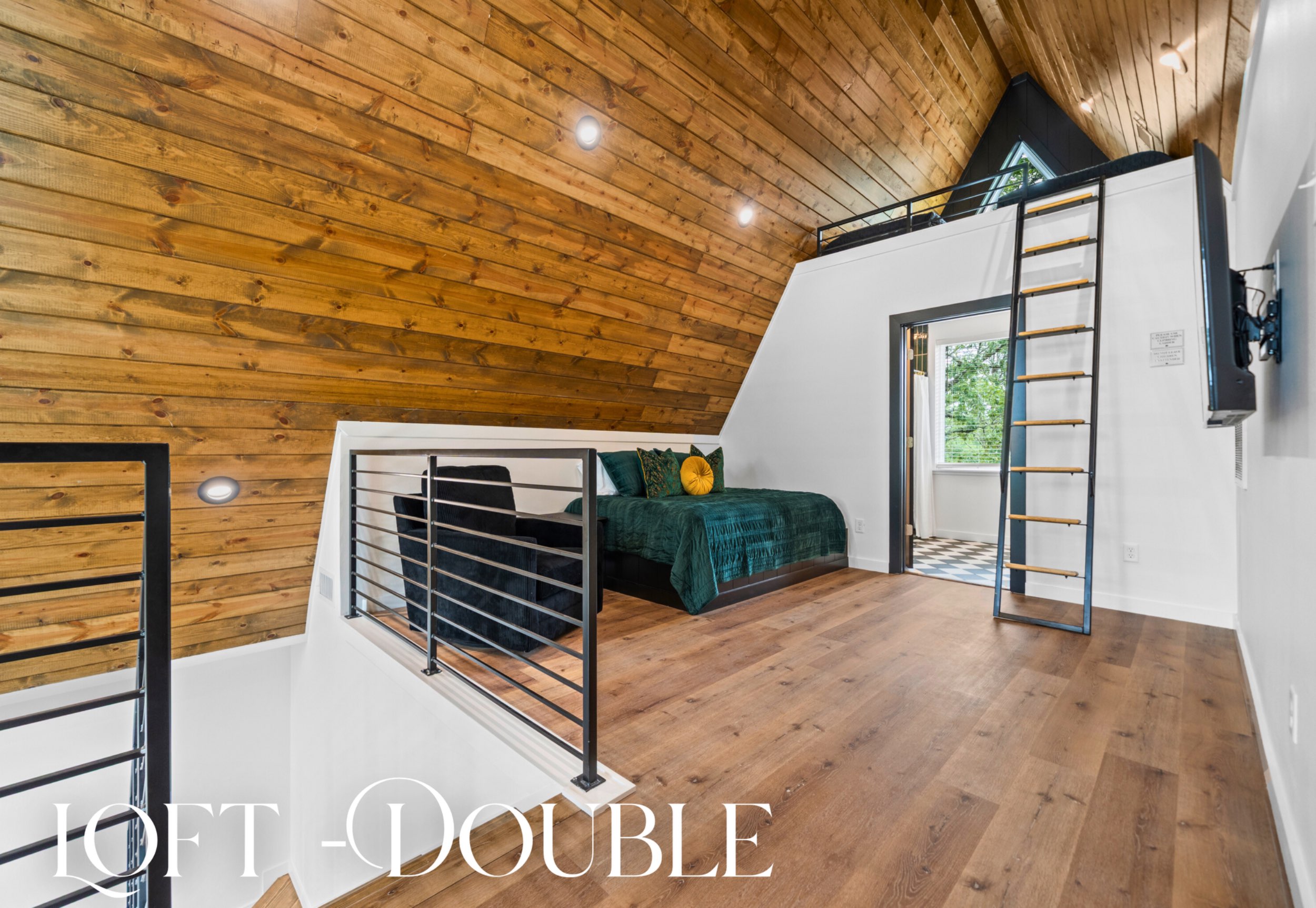 – Loft with 1 double bed and 2 twin beds in the upper nook, plus a private bathroom